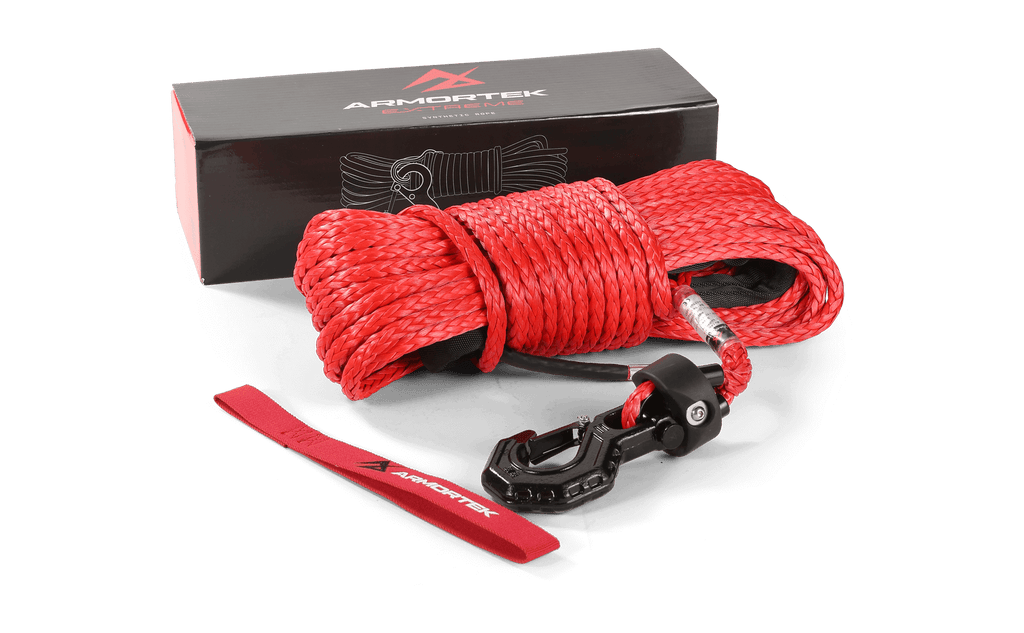 Armortek Synthetic Winch Rope is made with HMPE, a fiber stronger than hardened steel. It undergoes a unique pre-stretching process and is coated with special Armortek abrasion resistant coating for ultimate endurance.