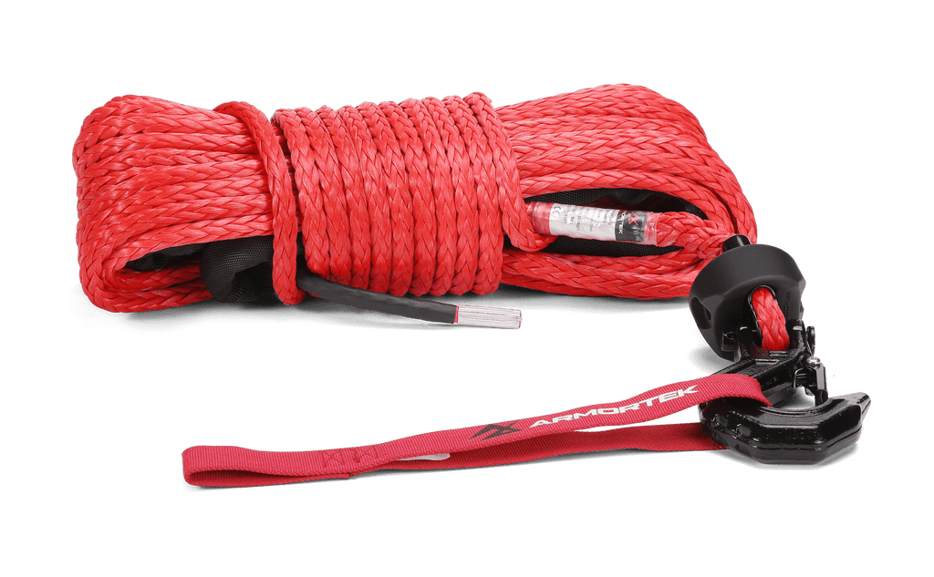 Armortek Synthetic Winch Rope is made with HMPE, a fiber stronger than hardened steel. It undergoes a unique pre-stretching process and is coated with special Armortek abrasion resistant coating for ultimate endurance.